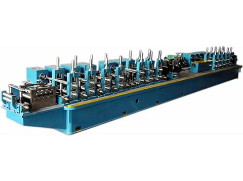 高頻焊管機是以帶鋼為原料,經開卷、成型、高頻焊接、解決焊瘤、定徑、校直、切斷等一系列制管工序制造出圓鋼管或各樣式一行鋼管的成套設備。采用輥式成型將帶鋼冷彎加工成圓坯,通過高頻感應加熱將焊縫擠壓形成圓管,在經過定徑加工生產出各樣式標準規格的圓管、方矩形管。